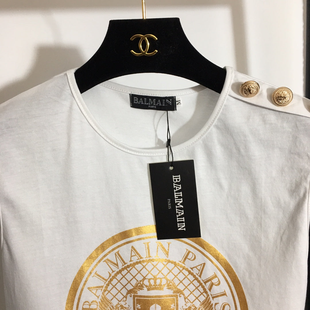 • Balmai* new hot stamping printing custom metal shoulder buckle sleeveless T-shirt small vest