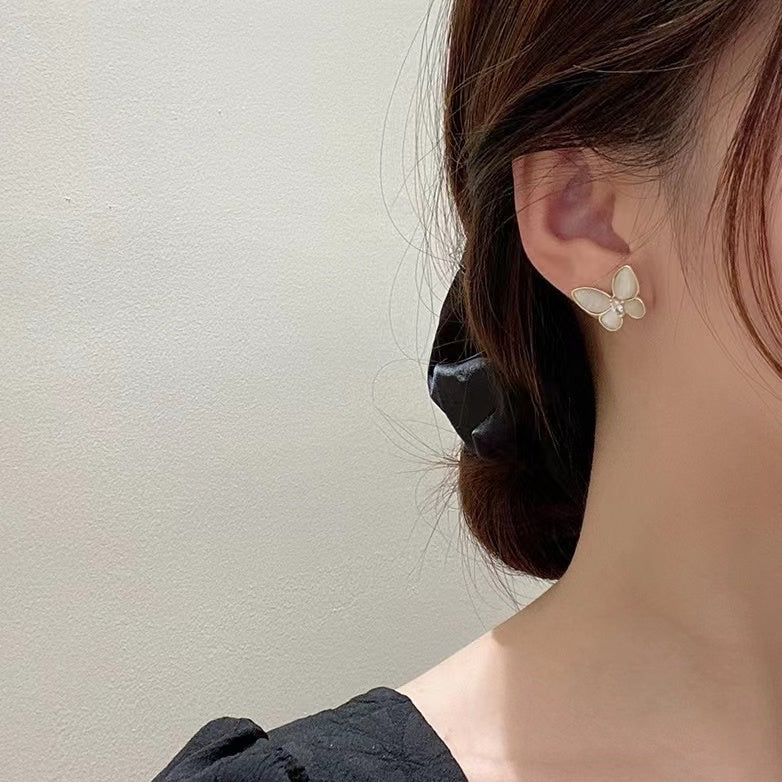 • Four-leaf clover butterfly mother-of-pearl earrings