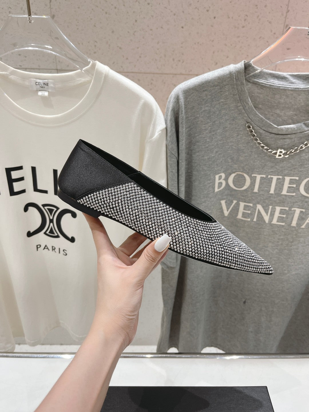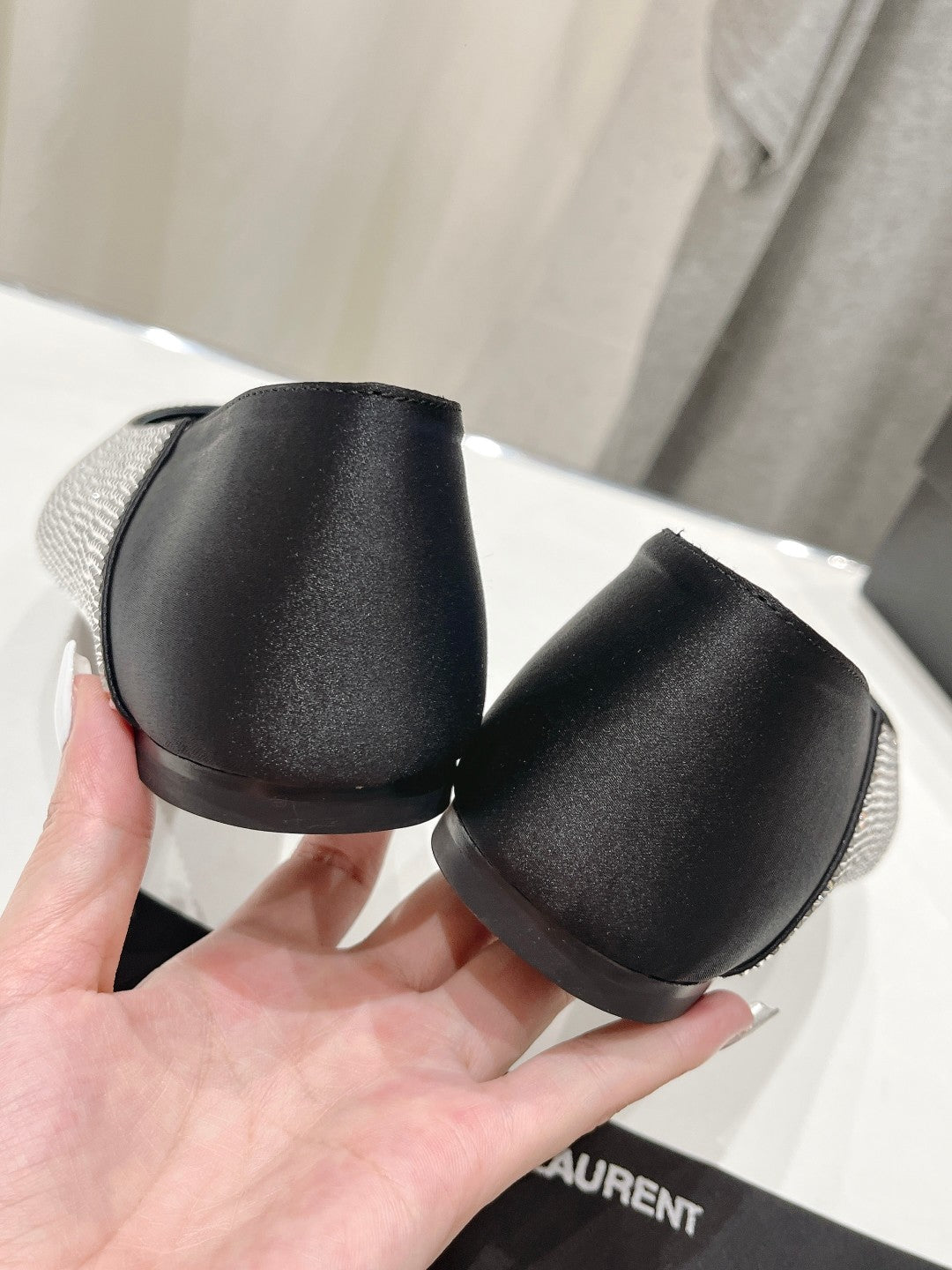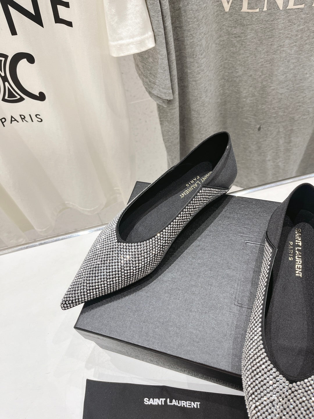 Gold Saint Laurent pointed rhinestone flat shoes mulesVIP1:1