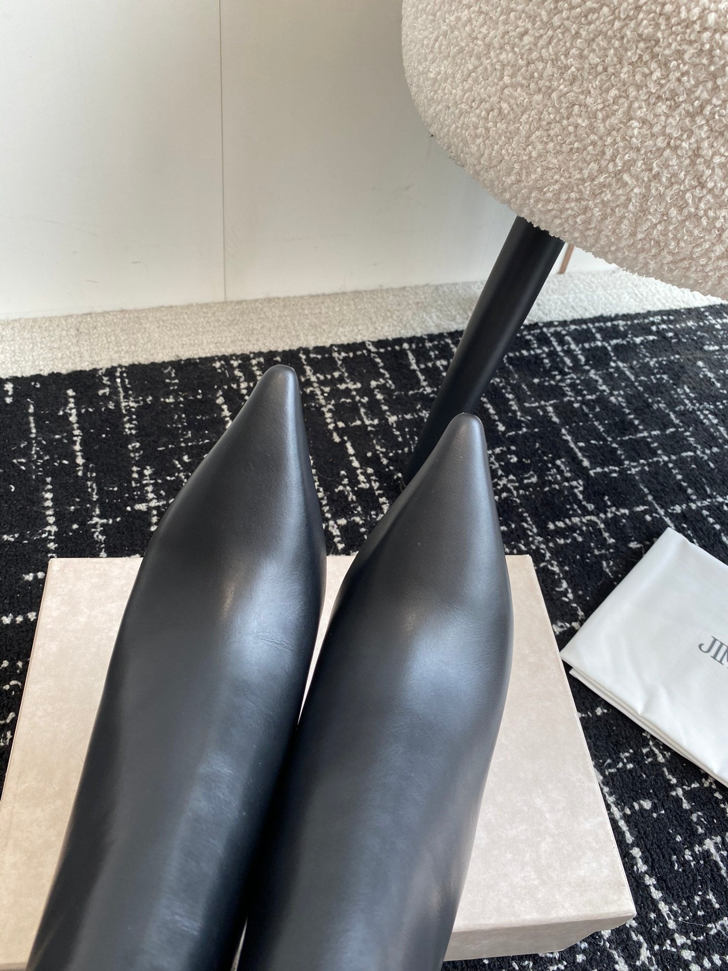 JIMMY CH** Early Autumn new simple pointed calfskin high-heeled short bootsVIP1:1