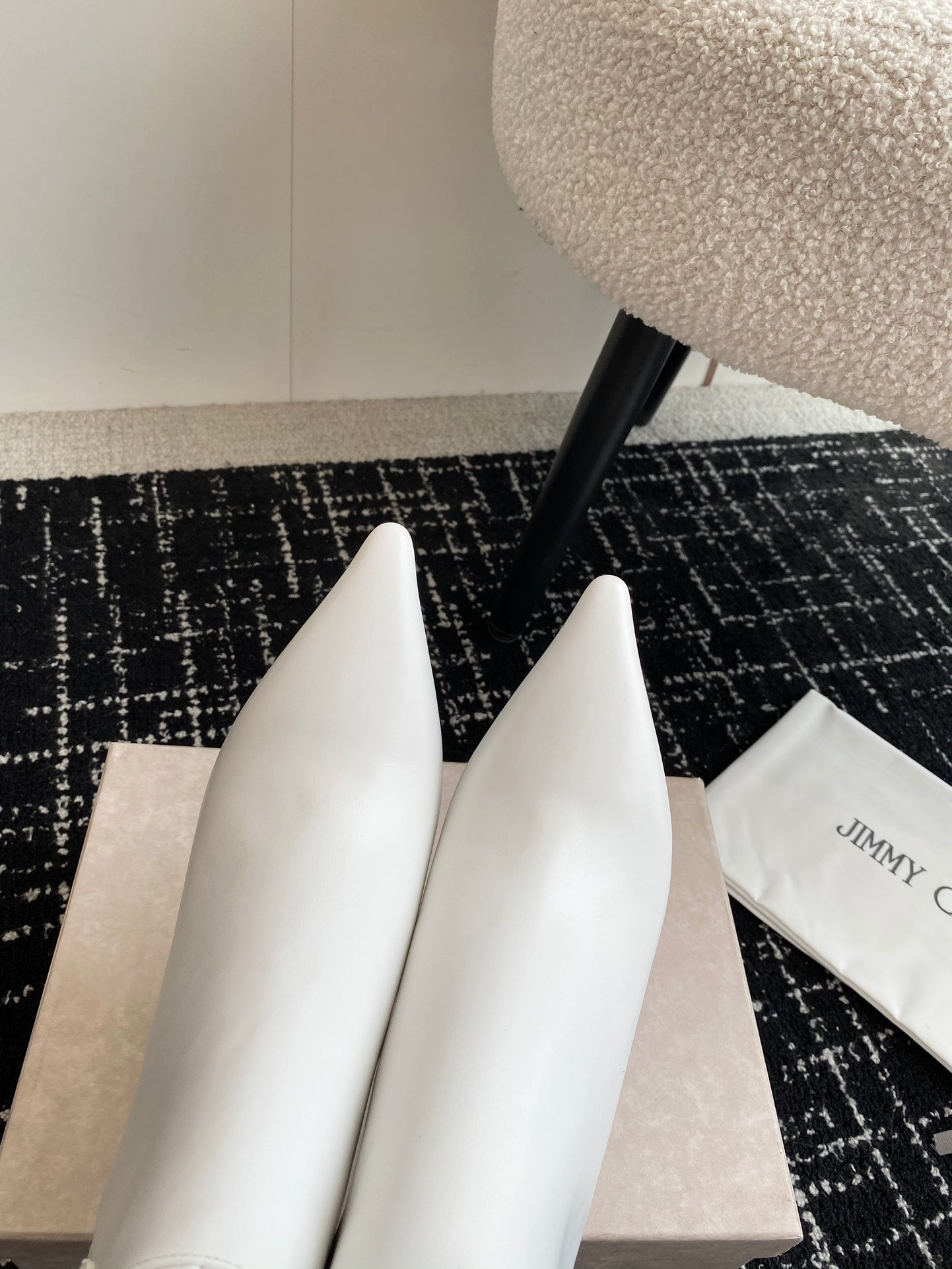 • JIMMY CH** Early Autumn new simple pointed calfskin high-heeled short bootsVIP1:1