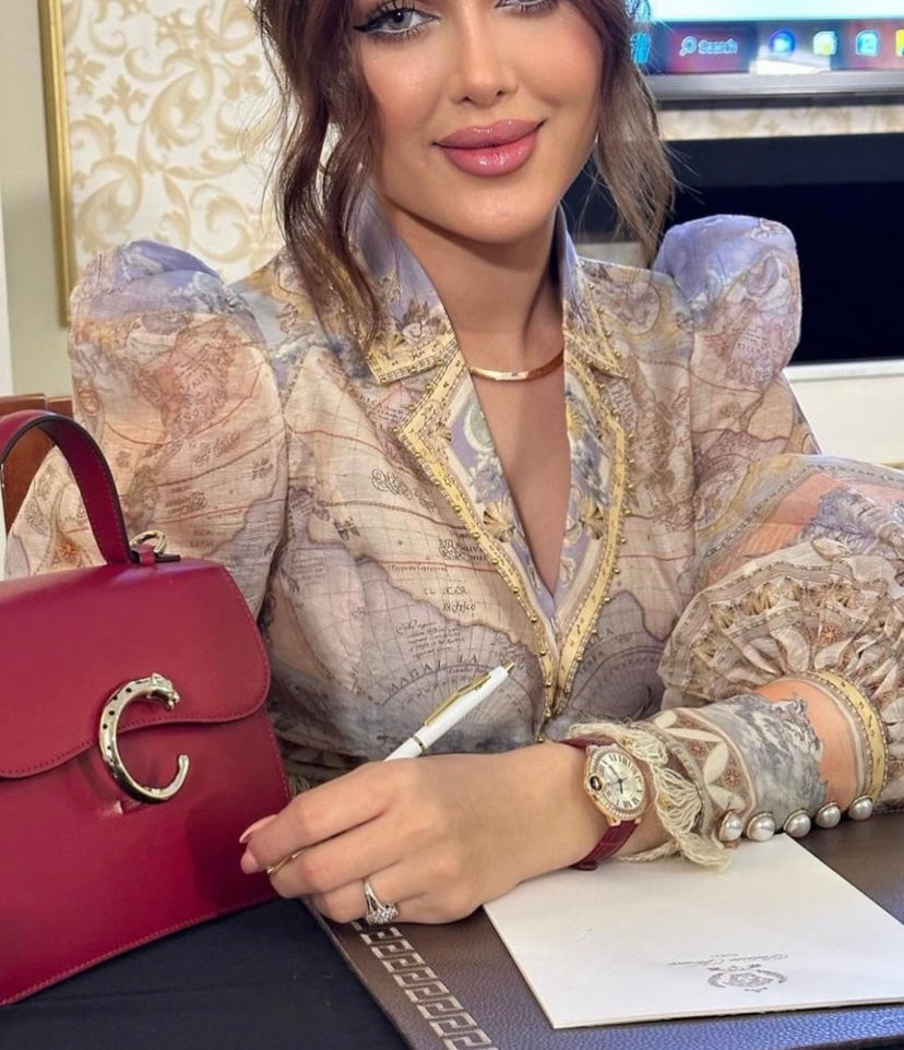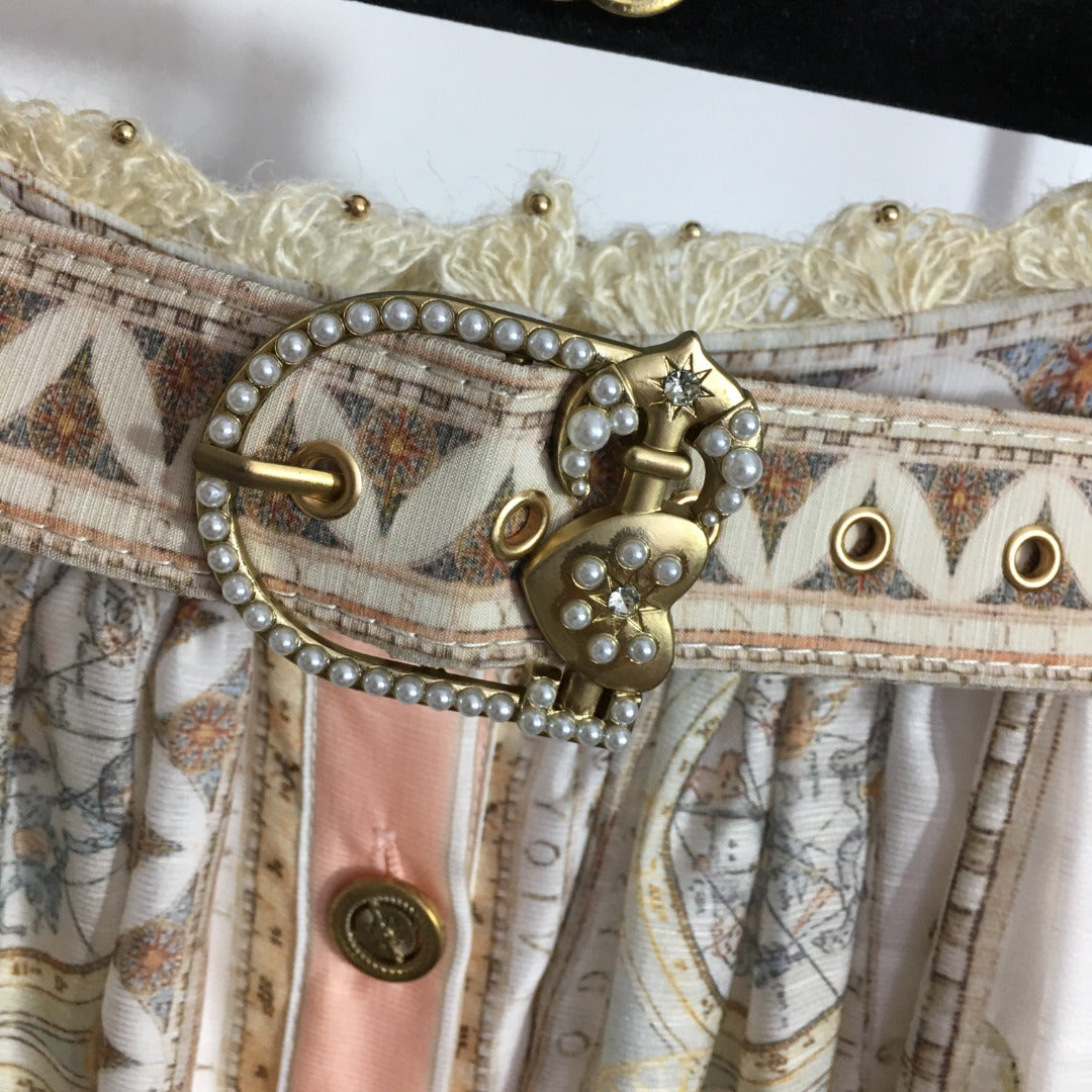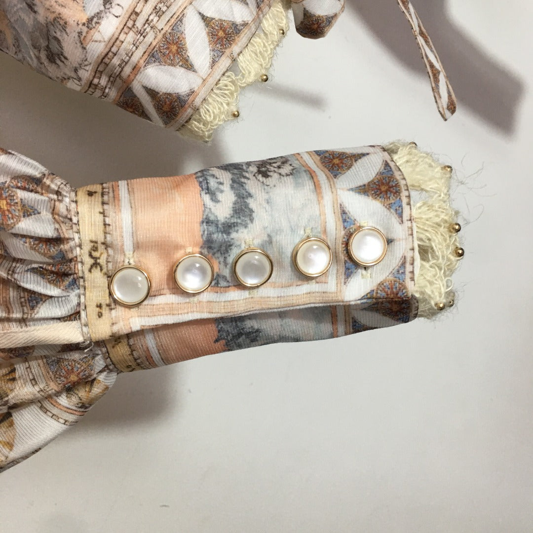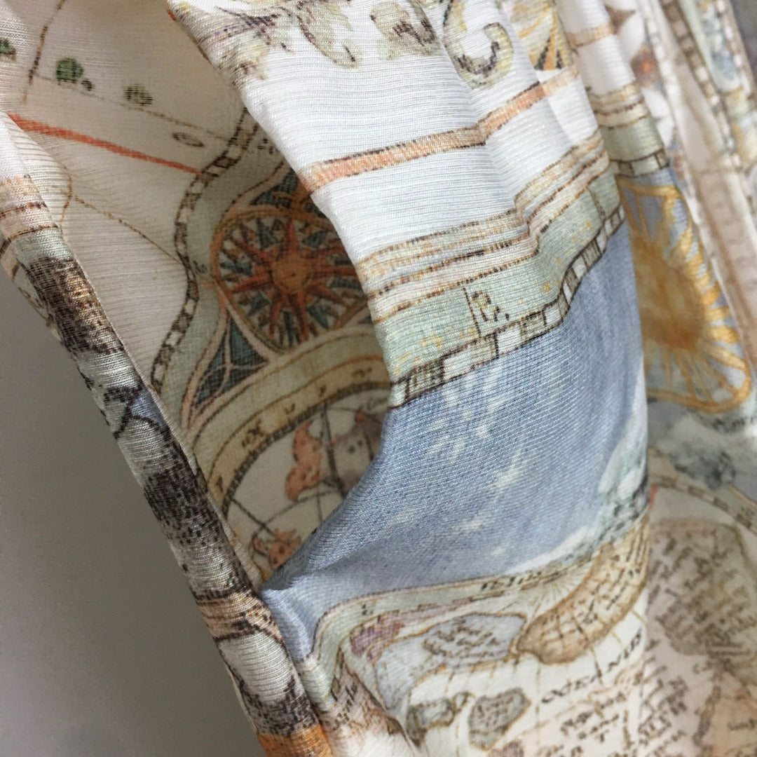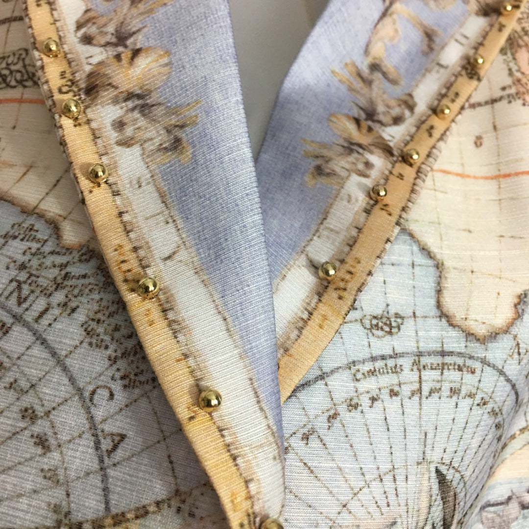 ZIM**** new suit, world map retro print lapel bubble long sleeve top + custom single-breasted high waist skirt,