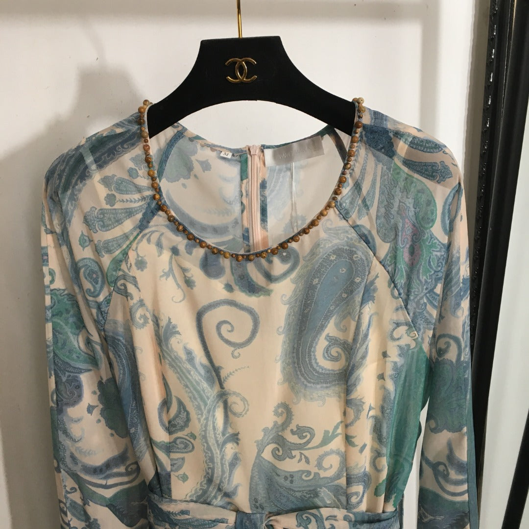 • ZIM*Round neck tie waist long sleeve dress
