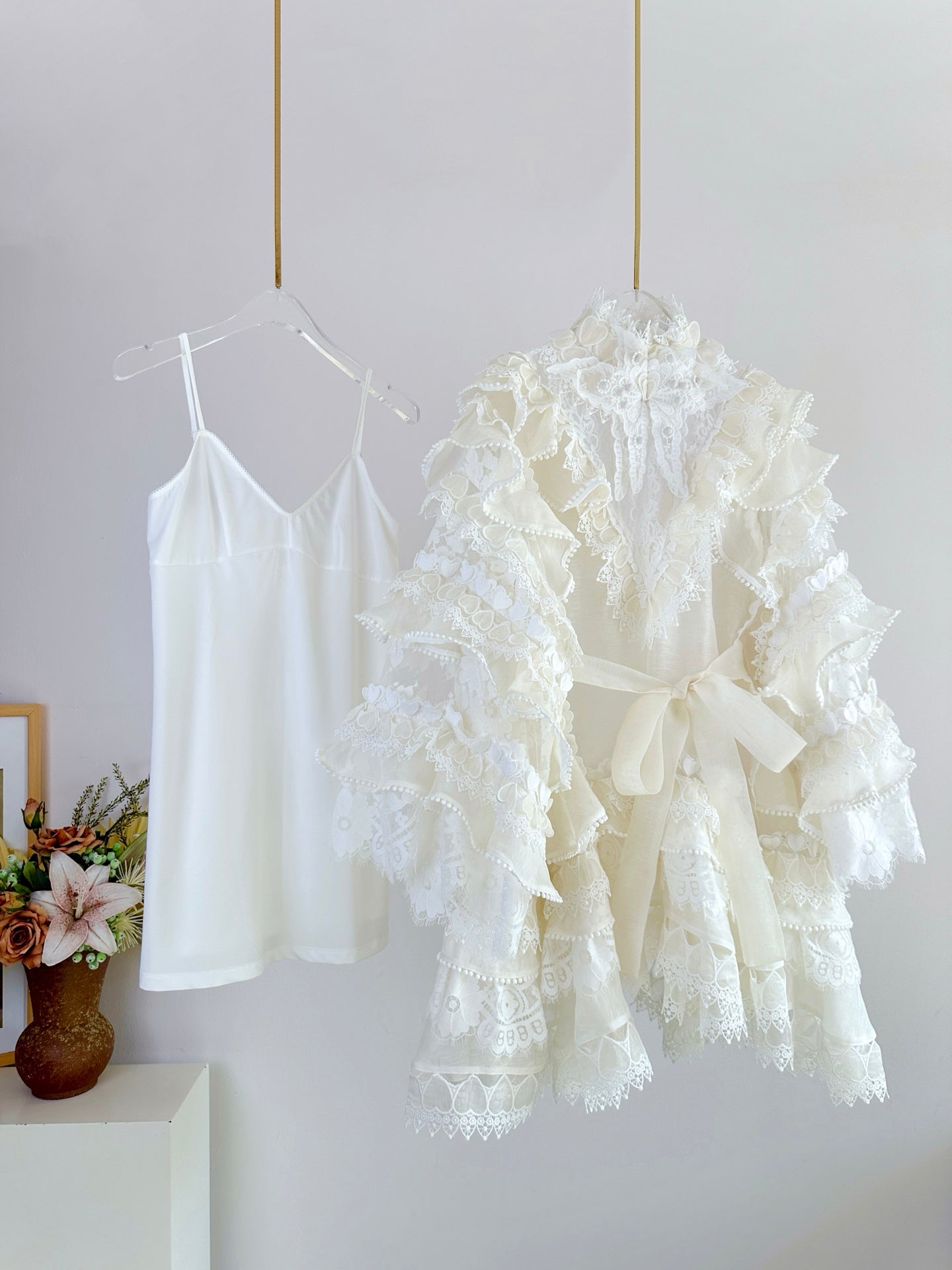 •Decorated with floral, lace and heart trims