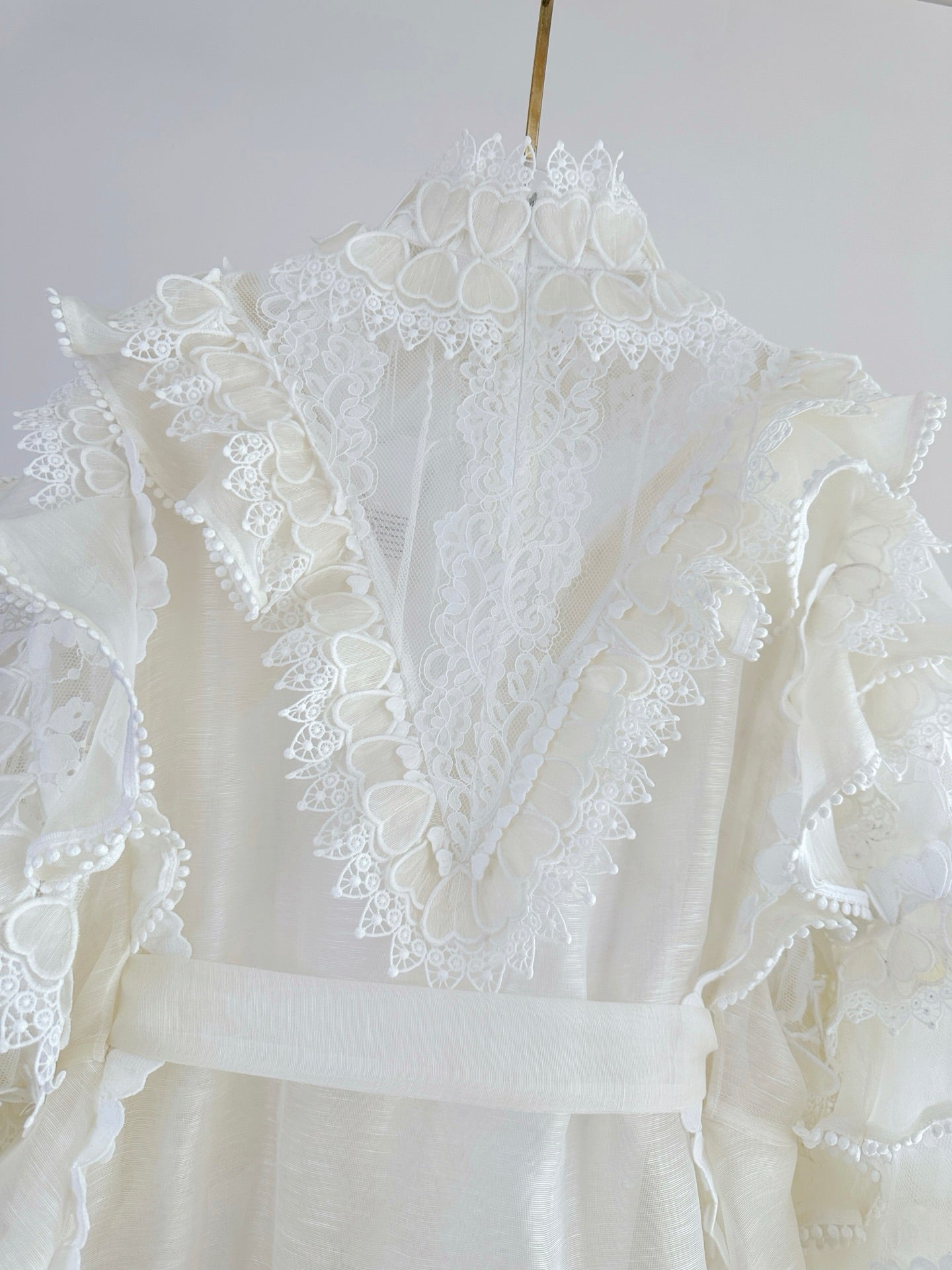 •Stand-up collar with delicate butterfly trims