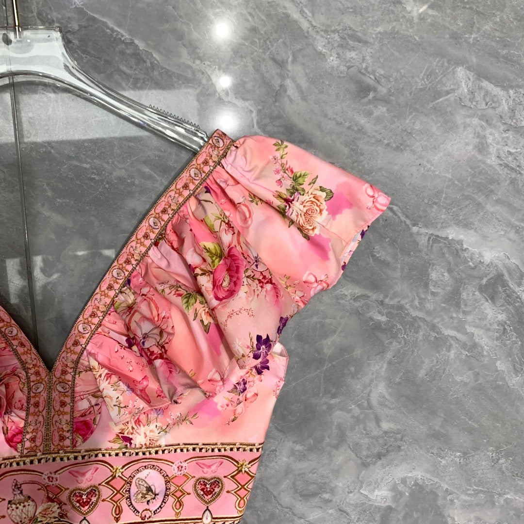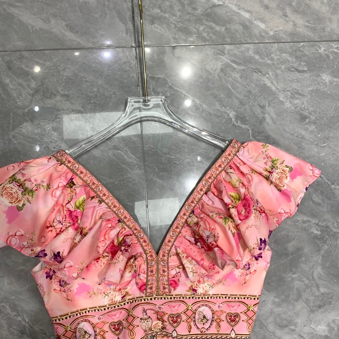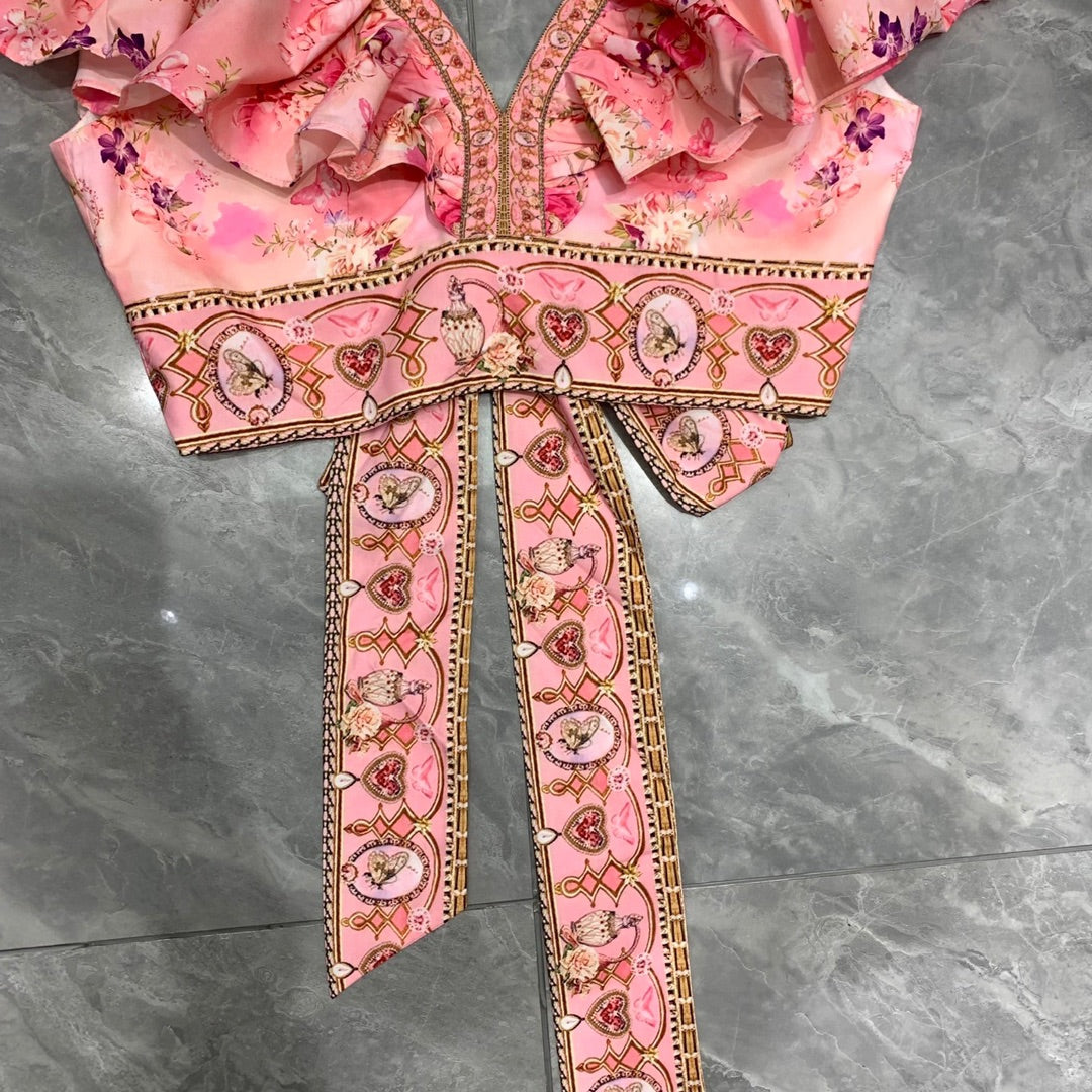 • CAMILLA Double V-neck ruffled back lace-up top + skirt set