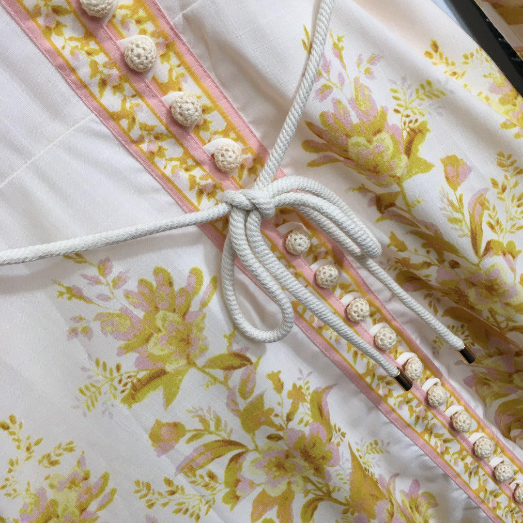 ZIMMERM* Flower Print V-Neck Waist Long Dress